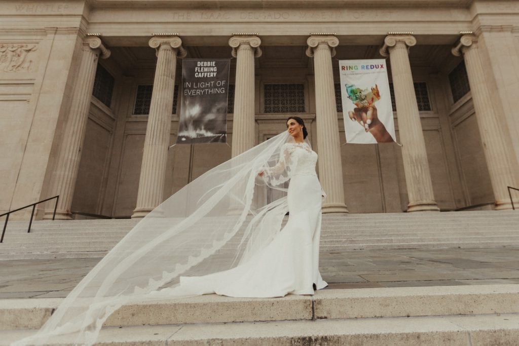Courtney’s bridal portrait session in New Orleans’ City Park was absolutely magical! We were lucky to have the perfect amount of wind to catch her long veil from time to time, adding a beautiful, whimsical touch to the photos. Courtney won us over with her easy smile and timeless beauty. Gorgeous!